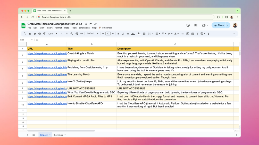 Fetch Meta Titles and Descriptions in Google Sheets